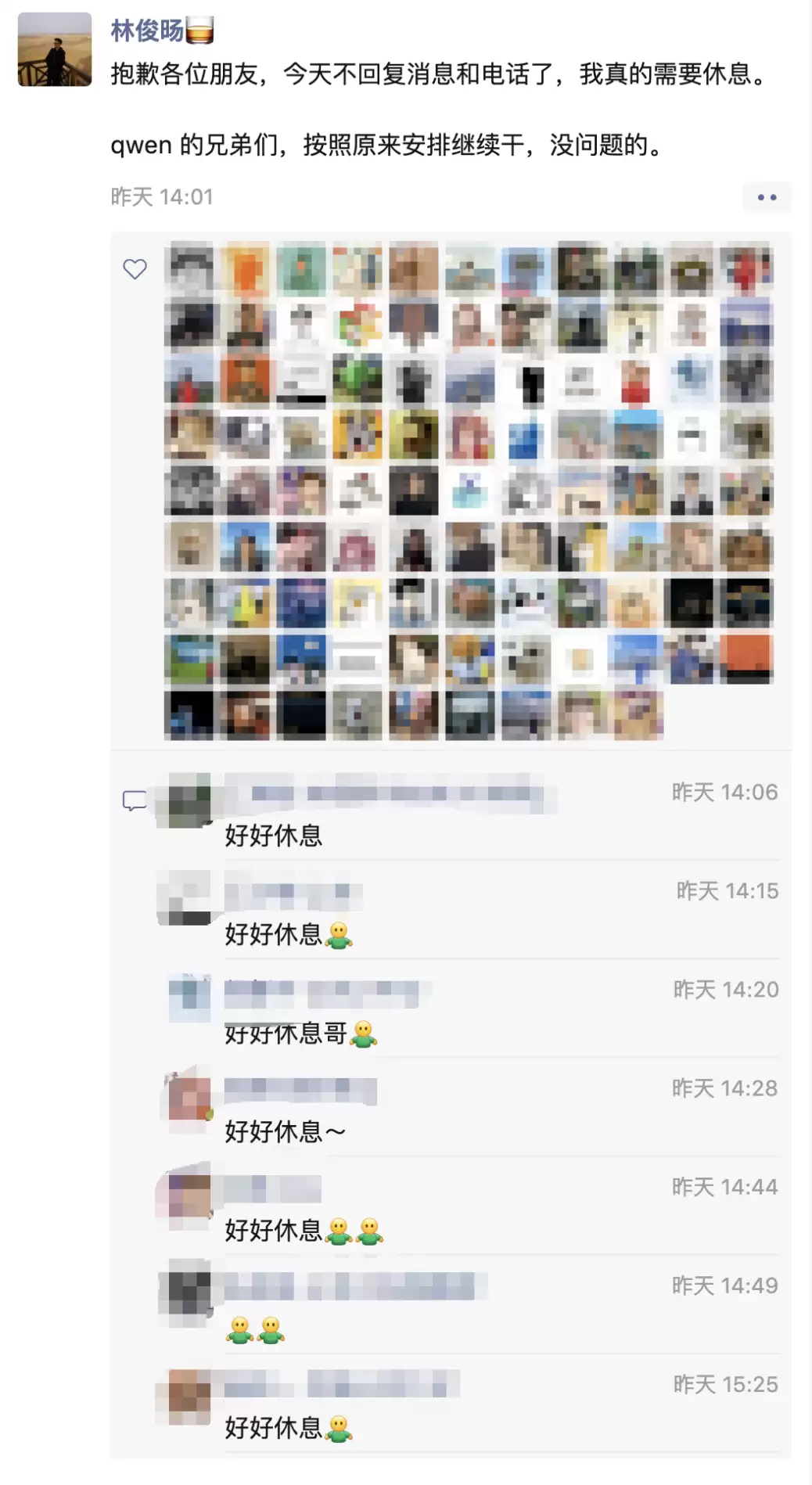 林俊暟本人方面,昨天他也在朋友圈短暂露面,表示“我真的需要休息。”同时也鼓励Qwen团队,“qwen的兄弟们,按照原来安排继续干,没问题的。”
