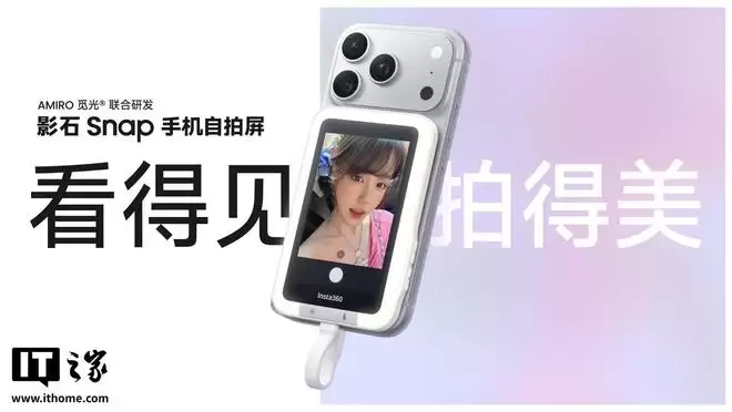 IT之家 3 月 5 日消息,影石 Insta360 今日推出一款手机影像创新配件 —— Snap 手机自拍屏。该产品支持磁吸直连、实时预览、全平台兼容,目标彻底解决手机后置镜头自拍如“盲拍”痛点。