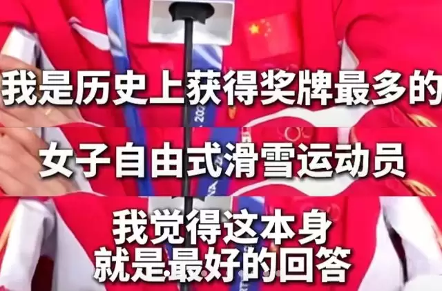 然后她坚定地说出事实:“我是历史上获得奖牌最多的女子自由式滑雪运动员,我觉得这本身就是最好的回答。”