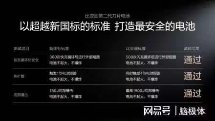 第二代刀片电池继续将安全进行到底,通过一系列超越新国标的安全测试,为用户打造最安全的电池,确保电池全生命周期都安全,彻底打消用户的安全顾虑。