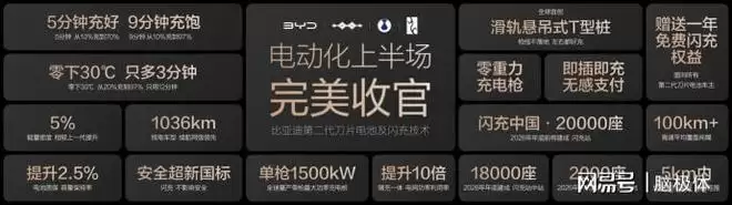 第二代刀片电池及闪充技术的发布,与“闪充中国”战略的落地,标志着 “充电慢”、“低温充电难”这两大世界性难题已被攻克,新能源汽车电动化的“上半场”至此完美收官。