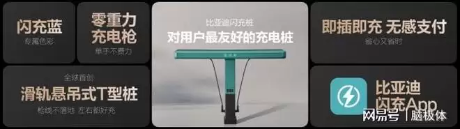 传统公共充电桩枪重、线脏、移动不灵活,充电流程还很繁琐,为了解决这些痛点,比亚迪闪充桩采用了全球首创的“滑轨悬吊式T型桩”设计,让线拉着枪,手感非常轻巧,几乎是“零重力充电枪”;并且,枪线永远保持悬空,避免缠绕更干净;还可以让用户轻松左右滑动,充电更灵活。同时,比亚迪还打通了车和桩之间的所有链路,只需通过比亚迪闪充APP简单设置,即可实现“即插即充,无感支付”,这就是对用户最友好的充电桩。