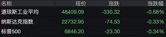 芯片股普遍走低,英伟达、AMD、阿斯麦、英特尔以及ARM的跌幅均超过1%;博通股价逆势上扬超过3%,公司预计明年人工智能芯片收入将突破千亿美元大关。