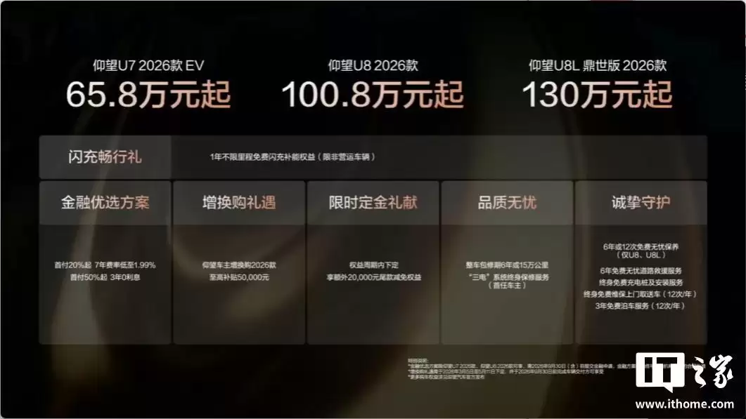 比亚迪2026款仰望U7/U8/U8L鼎世版上市,售价65.8万元起