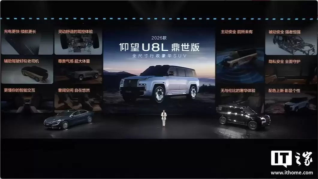 值得一提的是,仰望U8L也同步迎来了2026款。新车在增加续航、新增闪充功能之外,还带来了三大安全升级:应急浮水紧急自动激活、NOA爆胎稳行稳停、全场景隐私安全。现有老款车主未来也可通过OTA升级获得这些功能。