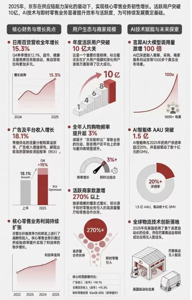 管理层同时表示,2025年外卖业务已为京东核心零售贡献了明显的用户增量与购物频次提升,这一协同效应将在2026年进一步释放。