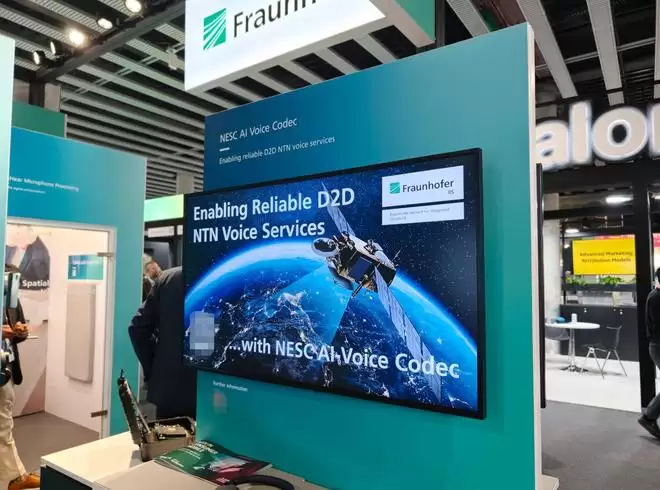 不做手机的诺基亚仍然是重要的设备商,这届MWC诺基亚带来的卫星技术是和语音压缩相关的,它联合Fraunhofer IIS展示了「超高效AI语音编解码器」。具体来说,这项技术的关键还是数据量压缩,让卫星通话在速率极低的情况下也能实现。值得一提的是,Fraunhofer IIS是老牌音频技术品牌,它来做语音编码器,很专业对口了。