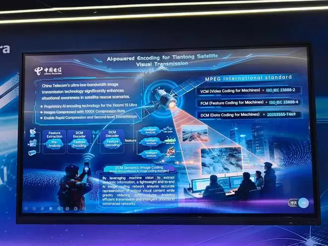 中国电信在现场展示了全球首个AI图像编码标准——DCM语义编解码技术,它能将任意高清图像极限压缩至 4KB以内。我们都知道,高轨卫星的优势覆盖面广,劣势则是速率低,通常只应用于语音、短信领域,主打应急场景。