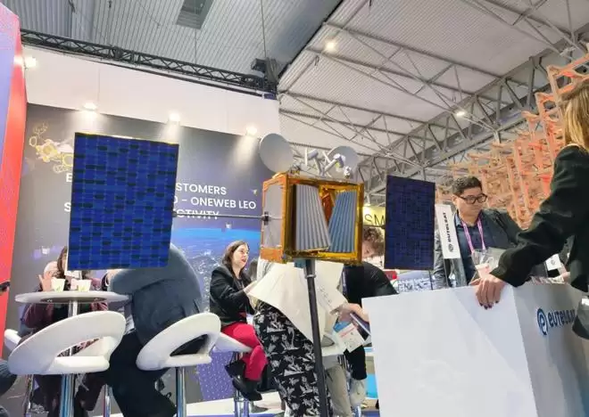 Eutelsat中文名欧洲卫星通信公司,是全球老牌卫星运营商。这届MWC,它展示了自家的技术方案:把高轨卫星和低轨卫星整合起来。