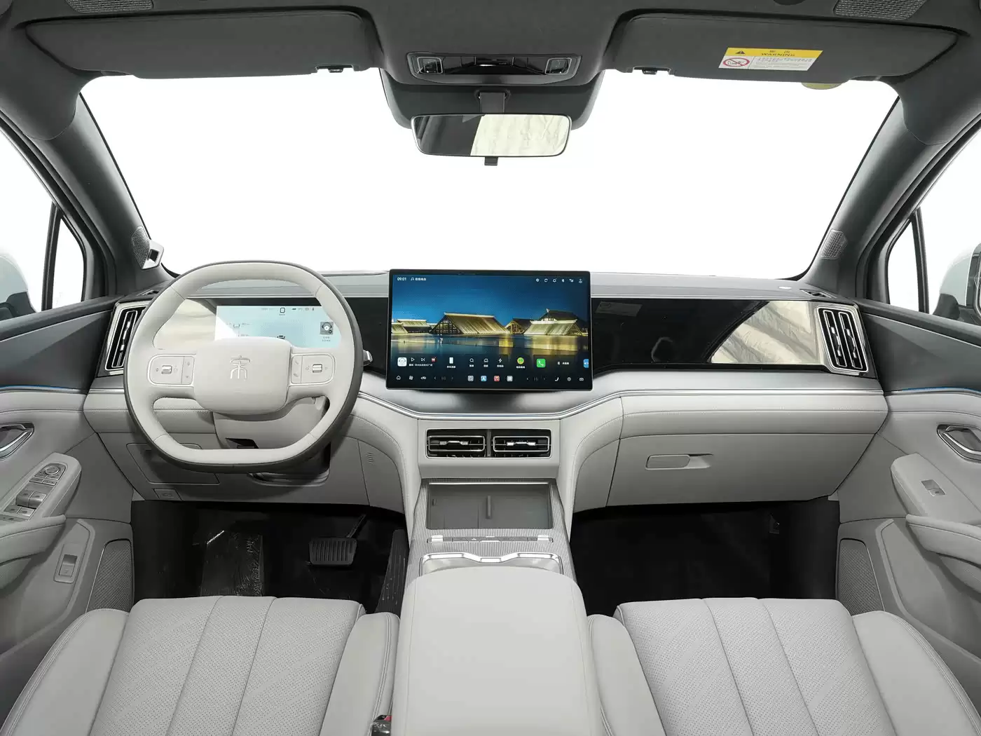 前脸采用封闭式格栅设计,中央贯穿式星环灯带与两侧锐利的LED大灯组形成呼应。高配车型可选装车顶激光雷达,搭载天神之眼5.0高阶智驾系统,支持城市领航辅助、高速领航辅助以及APA自动泊车功能。车内配备DiLink 5.0智能网联系统,支持多场景语音交互与远程控制,保留的物理按键与旋钮兼顾了日常使用的便利性。