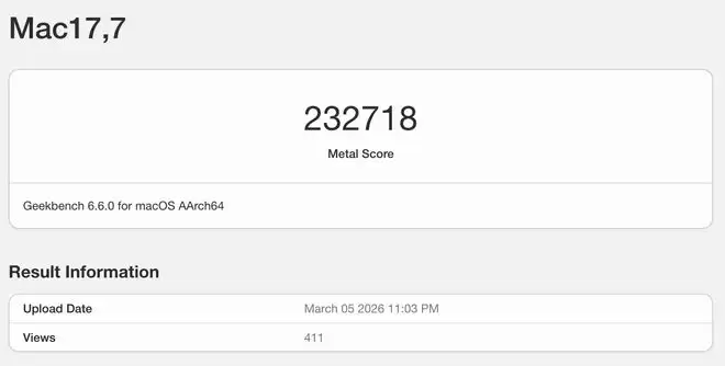 快科技3月7日消息,苹果本周正式推出了全新笔记本MacBook Neo,起售价定为4599元。作为苹果布局入门级市场的新利器,这款新品的实际性能表现引发了数码爱好者的广泛关注。目前,该机已经现身Ge