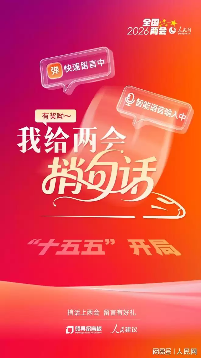 人民网2026年“我给两会捎句话”建言征集活动正在进行,欢迎各界群众通过活动专题页面、人民网“领导留言板”小程序及客户端等多种渠道参与。