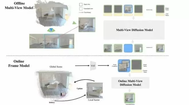在该模型中,团队利用前沿的前馈式重建技术生成显式的物理空间锚点,为模型提供稳固的 3D 结构支撑。与此同时,模型会将参考帧作为生成模型内部的隐式记忆。