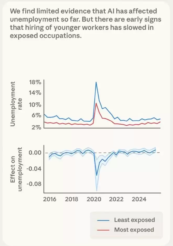 Anthropic的报告显示,现在失业率还没大涨。