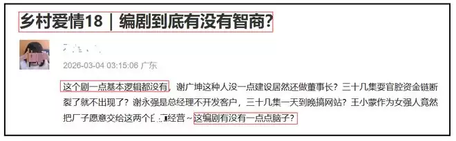 有网友呼吁说:《乡村爱情》,别再拍了!据《中国新闻周刊》3月3日报道,电视剧《乡村爱情》第18季在今年春节前播出,似乎没有收获任何反响。灯塔专业版数据显示,这部跨越了20年的剧集,本季的累计播放量目