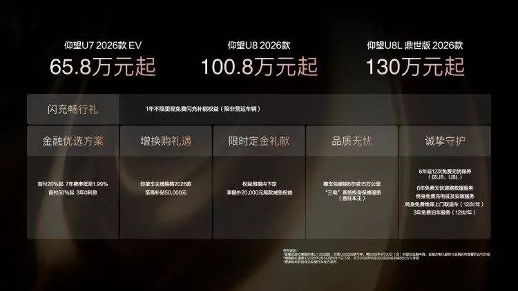 为了进一步提升用户体验,仰望汽车还推出了闪充畅行礼遇。在2026年5月11日(含)前支付2026款仰望车型定金的用户,自交付之日起一年内,可在比亚迪闪充充电桩享受免费充电权益(限非营运车主)。这一举措无疑为用户提供了更加便捷和经济的出行选择。