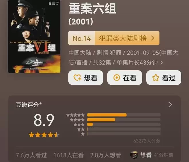 不管吃饭还是睡前,点开一集看六组出警、查案,就觉得特别踏实。它没有华丽服化道和狗血感情戏,全靠粗粝的真实感圈粉,豆瓣评分常年稳在8分以上,第一部更是高达8.9分。