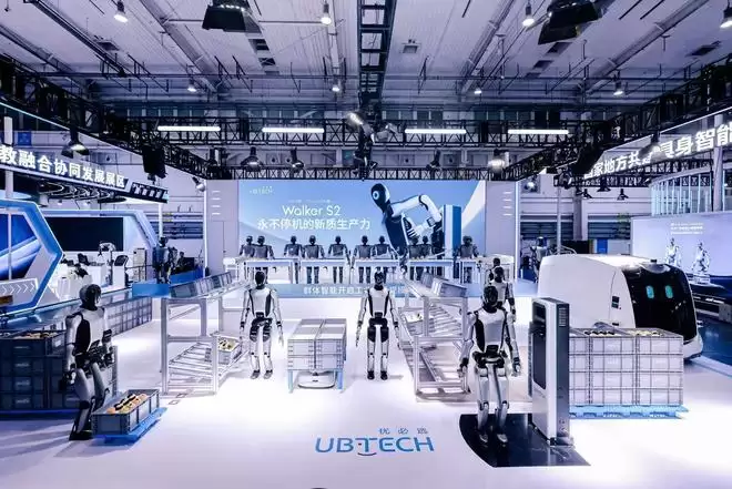 2025年,优必选公司展示人形机器人群体智能技术。新华社发