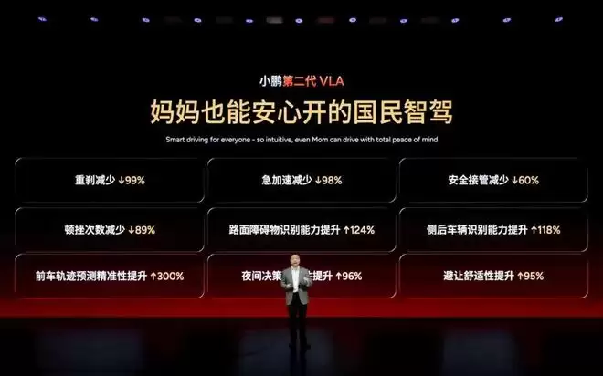测试表现和明确的量产计划,何小鹏认为小鹏第二代VLA已经比国内的行业一流选手实现了代际领先,“领先了5倍”。