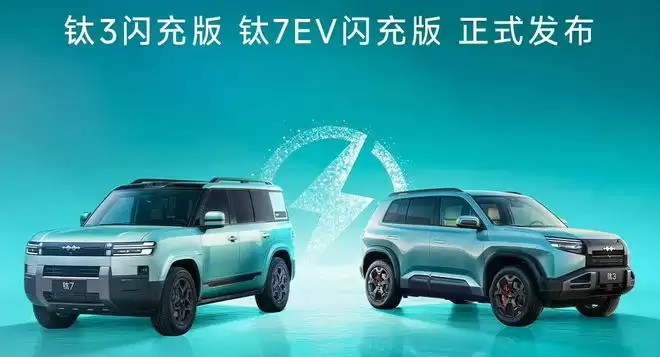 方程豹品牌方面,本次亮相了钛3闪充版和钛7EV闪充版两款车型。