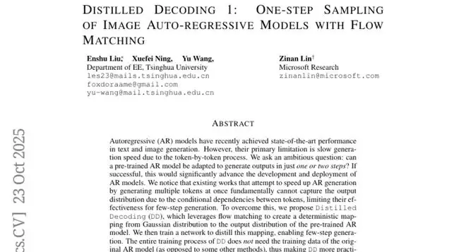 然而,清华大学的研究团队提出了一个看似不可能的问题:能否让这位严谨的画家学会一步到位地完成整幅作品,同时还保持原有的精细度?经过深入研究,他们开发出了名为"蒸馏解码"(Distilled Decoding,简称DD)的创新方法,成功实现了这个看似不可能的目标。