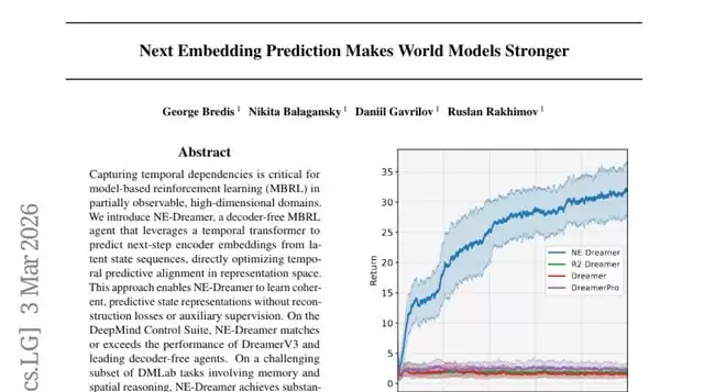 在人工智能的世界里,有一个长期存在的难题,就像教一个人既要记住过去又要预测未来一样困难。传统的AI系统在处理复杂环境时,往往像一个健忘症患者,看到当前画面就忘记了之前发生的事情,或者像一个只会死记硬背的学生,能重复看到的内容却无法预测接下来会发生什么。T-Tech公司的研究团队针对这个问题,开发出了一种全新的AI系统叫做NE-Dreamer,这个名字中的"NE"代表"Next Embedding"(下一步嵌入),意思是这个AI能够预测下一步的思维状态。