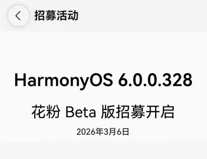 3月6日华为面向Mate 60系列、Pura 70系列、nova 15系列以及多款MatePad平板,正式开启了HarmonyOS 6.0.0.328花粉Beta版的尝鲜推送。