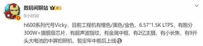发布时间方面,荣耀500系列于2025年11月开售 ,按半年迭代节奏,600系列有望2026年5-6月登场,且配色曝光为橙/黑/金三色,代号Vicky 。