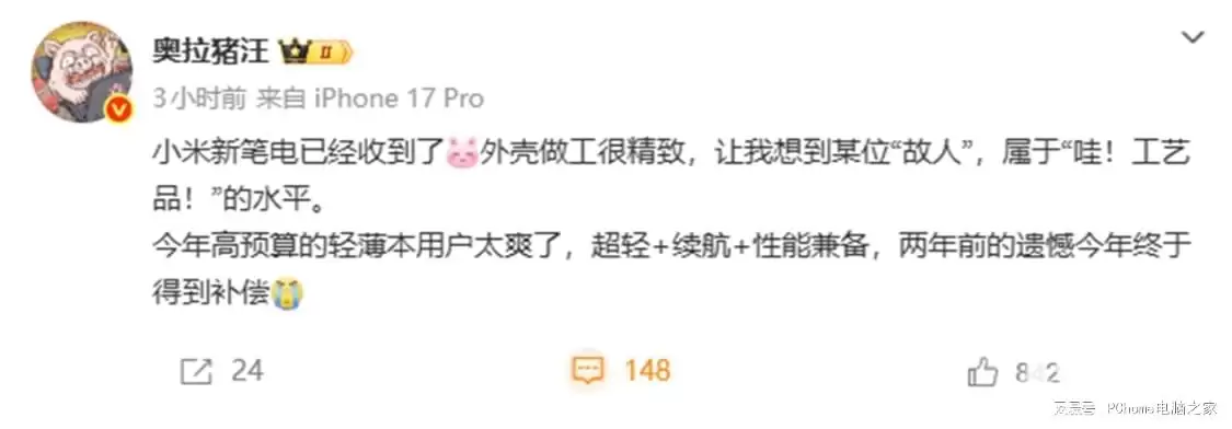 3月6日,科技博客PChome报道称,知名博主“奥拉猪汪”曝光了小米全新Book系列笔记本电脑的产品信息。这款新品拥有媲美工艺品的精致外壳做工,同时在设计上实现了超轻薄、长续航与高性能的完美平衡。