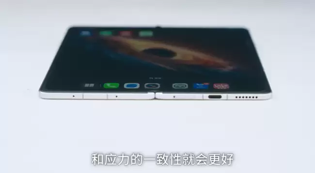 开孔率,从字面意思理解就是铰链部件上镂空或开孔占整个铰链的比例。开孔越多,铰链区域对屏幕的支撑就越少,当用户手指划过屏幕时,开孔区域的屏幕受力不均,就会造成永久性凸显或隆起,视觉上就是我们常说的折痕。