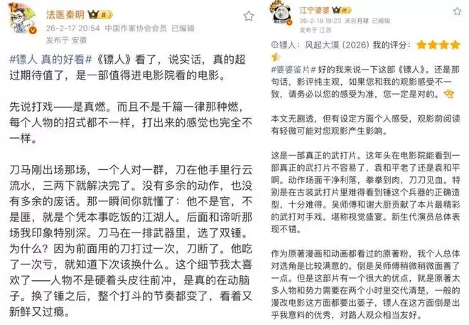 而微博助力《镖人》逆袭,也带来了深远的价值意义。好内容口碑和票房的爆发,是对“认真耕耘创作者”的肯定,推动武侠类型、国风美学的重振。