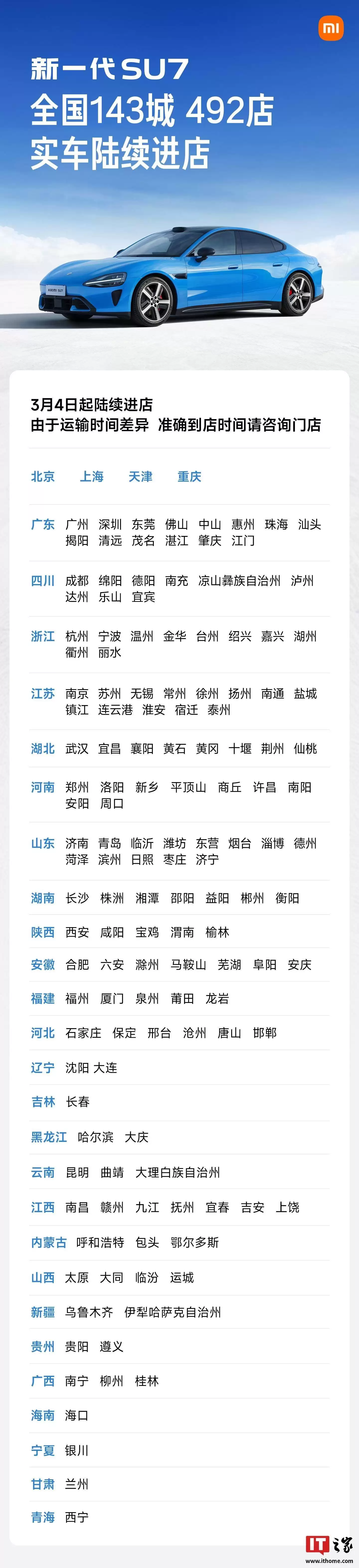 小米SU7进驻143城492店,智能配置与续航能力全面升级