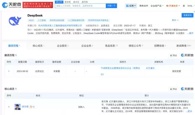 就像DeepSeek,天眼查APP数据显示,DeepSeek成立于2024年6月,也就是说仅用了一年半的时间就名震全球。