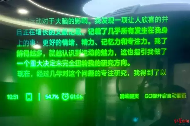 ▲影目INMO的眼镜镜片像提词器一样显示文字
