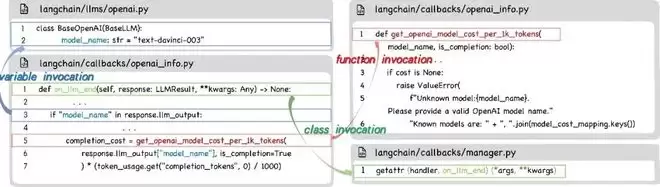 一个真实仓库中的依赖链条:若未阅读箭头所连接的函数与类,即使模型生成补丁,也难以保证语义正确