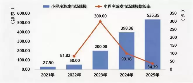 根据《2025年中国游戏产业报告》,2025年国内游戏市场实际销售收入首次突破3500亿元,达到3507.89亿元,同比增长7.68%,用户规模达到6.83亿。其中,小游戏成为增速最快的细分赛道之一,全年收入达到535.35亿元,同比增长34.39%,贡献了游戏市场一半以上的新增收入。