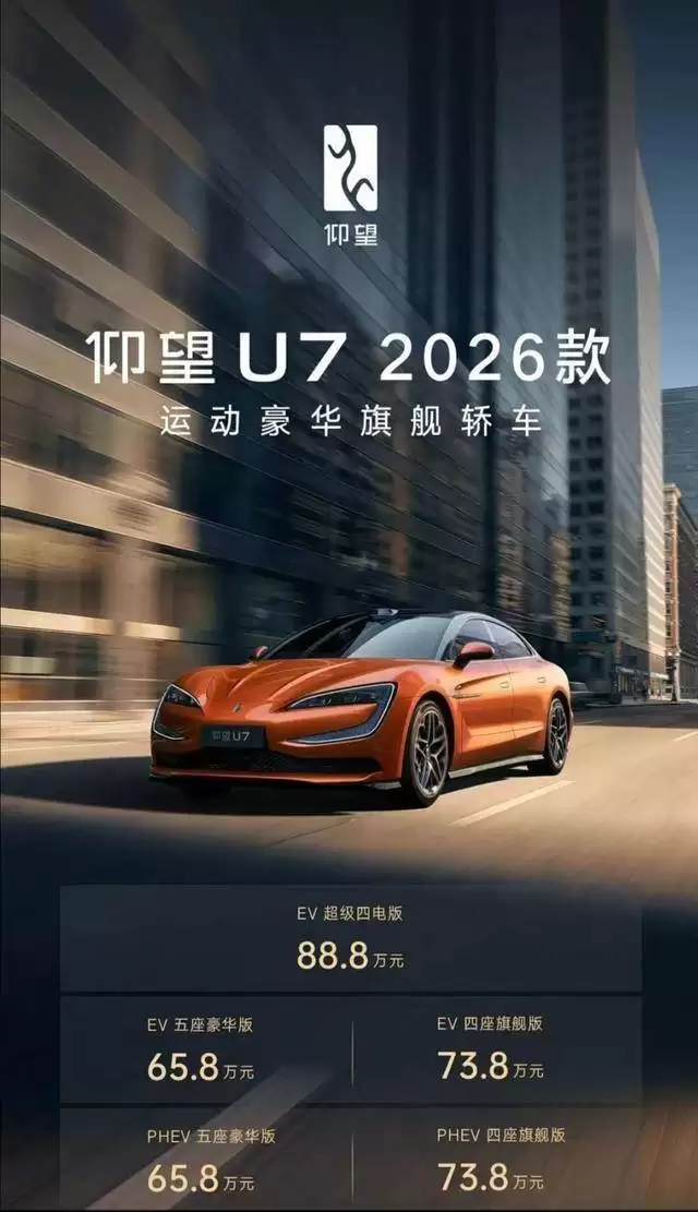 2026款仰望U7上市:国产豪华新标杆,续航超千公里售65.8万