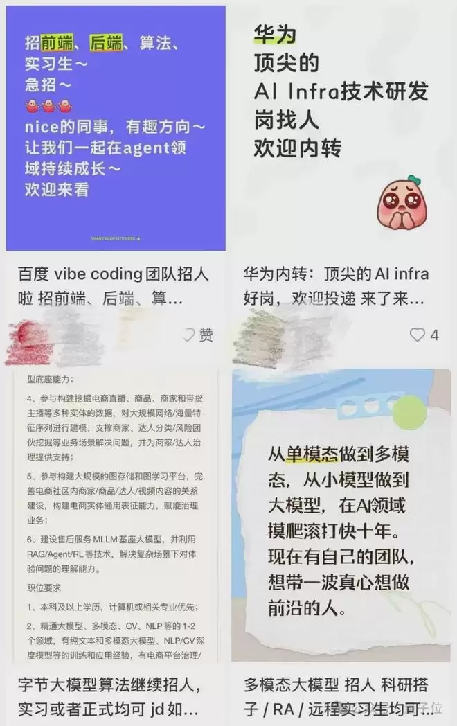 各家大厂的大模型团队都会开放定向招募,例如腾讯混元实验室、字节Top Seed人才计划等等。连某社媒平台上都有不少大模型实验室的大佬现场捞人。