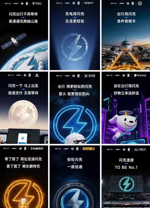发布会现场,比亚迪宣布与九大行业领军品牌达成战略联动,共同构建一个覆盖通信、消费、物流等多个领域的"高效生态圈"。中国电信、OPPO、顺丰等品牌代表通过视频连线表示,将基于各自场景优势推动闪充技术的落地应用:中国电信计划在5G基站配套建设中融入超充站;OPPO正探索手机与车载充电协议的互联互通;顺丰则开始试点新能源物流车的闪充网络。这种跨维度的合作,打破了传统汽车产业的边界,让充电技术从单纯的交通配套,延伸至智慧城市、移动终端等更广阔的生活场景。