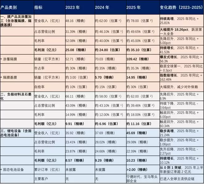 2024-2025年,璞泰来的膜产品营收占比从31.39%提升至49.65%,成为公司第一大收入来源。