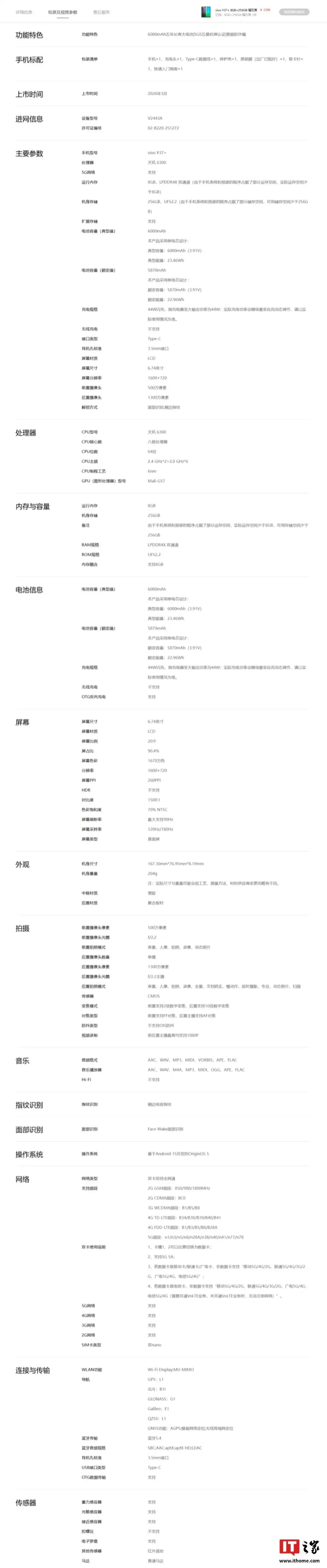 以下是IT之家整理的vivo Y37+手机的包装内容及详细规格参数: