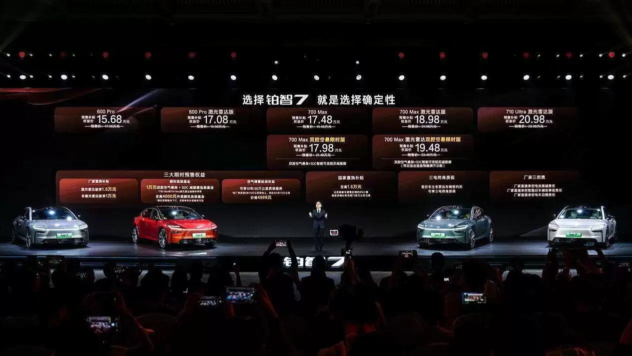 广汽丰田旗下全新旗舰纯电轿车铂智7近日正式开启预售,新车共推出五个版本,预售权益价区间为15.68万元至20.98万元。作为主流纯电家轿市场的新成员,铂智7以“新能源时代的丰田味道”为核心理念,首次将双腔空悬技术下放至17万级市场,并整合激光雷达智驾、鸿蒙座舱等高端配置,试图在价格与品质之间找到理想的平衡点。