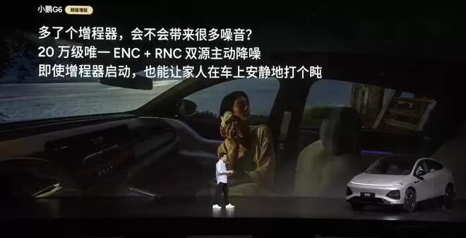 为了应对增程器介入时的噪音,小鹏加入了 ENC 和 RNC 双源主动降噪系统,提升了座舱的静谧性。