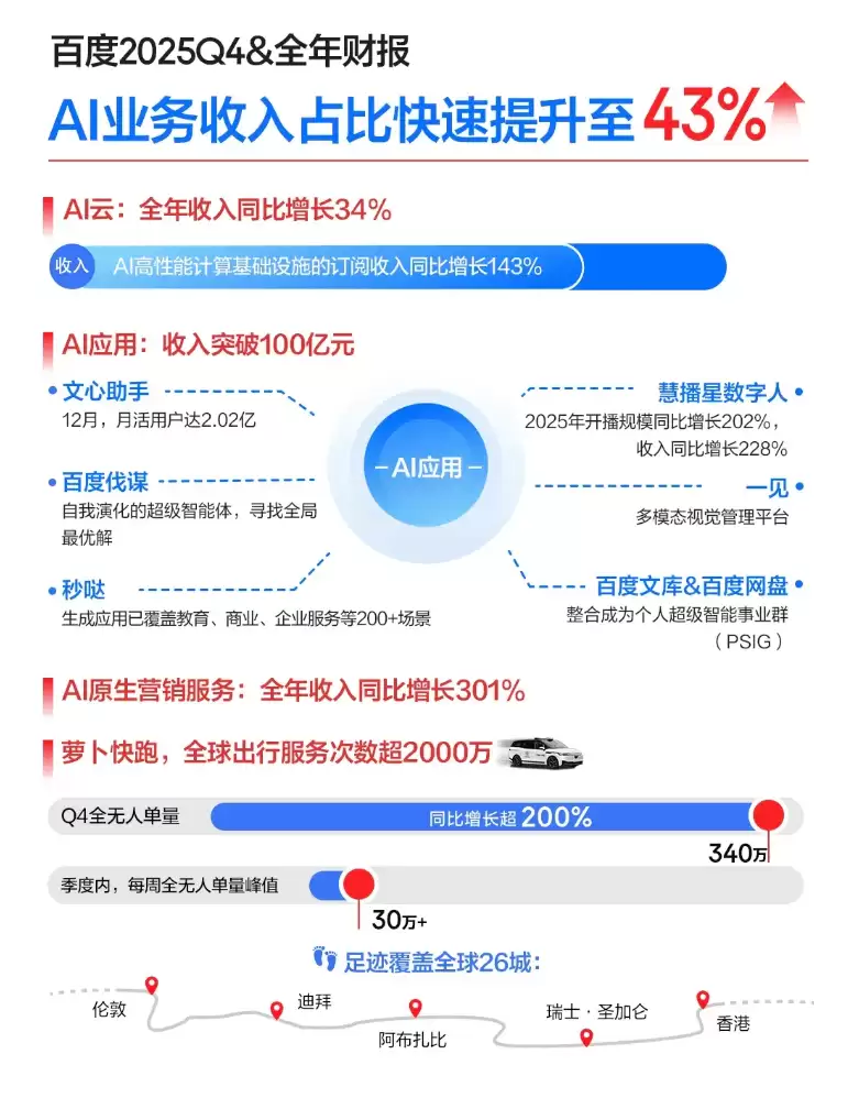 百度AI收入占比达43%:15年布局形成完整生态,企业转型新模式显现