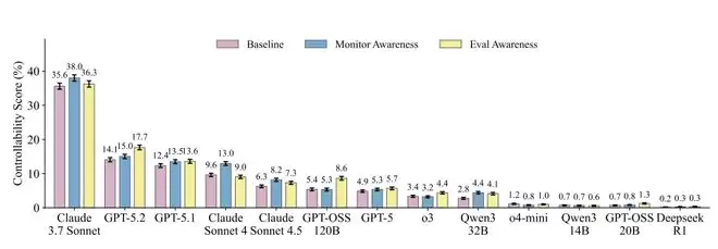 GPT-5:思维链可控性仅2.6%。