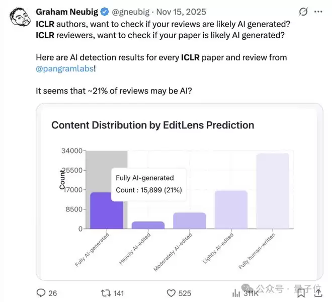 比如,即将在巴西举办的ICLR 2026,去年出分时就被曝出有21%的评审意见是AI写的。