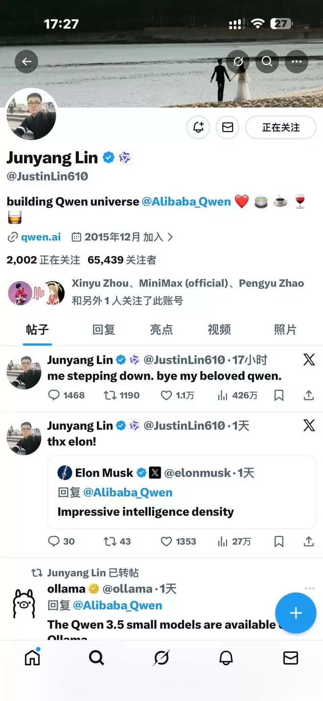 林俊旸在X平台敲下"me stepping down. bye my beloved qwen"的七个单词时,大洋彼岸的硅谷,或许有人能读懂这短短一句话背后的重量。