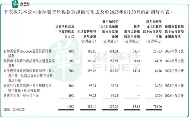 公司的野心不止于此。2025年7月启动的“Robotaxi+”战略规划显示,未来5年其将把Robotaxi运营拓展至100个核心城市,构建超万辆车队,同时建成三级运维网络,形成每年支持10万辆Robotaxi线下运维的能力。上市募资的40%也明确用于自动驾驶及Robotaxi运营研发,2025年上半年已动用5871万港元推进相关业务,彰显其深耕该赛道的决心。