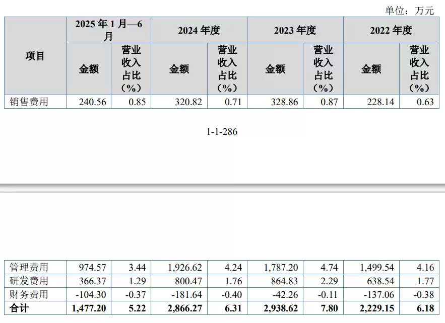 报告期各期,公司销售费用分别为228.14万元、328.86万元、320.82万元和240.56万元,占营业收入的比重为0.63%、0.87%、0.71%和0.85%。