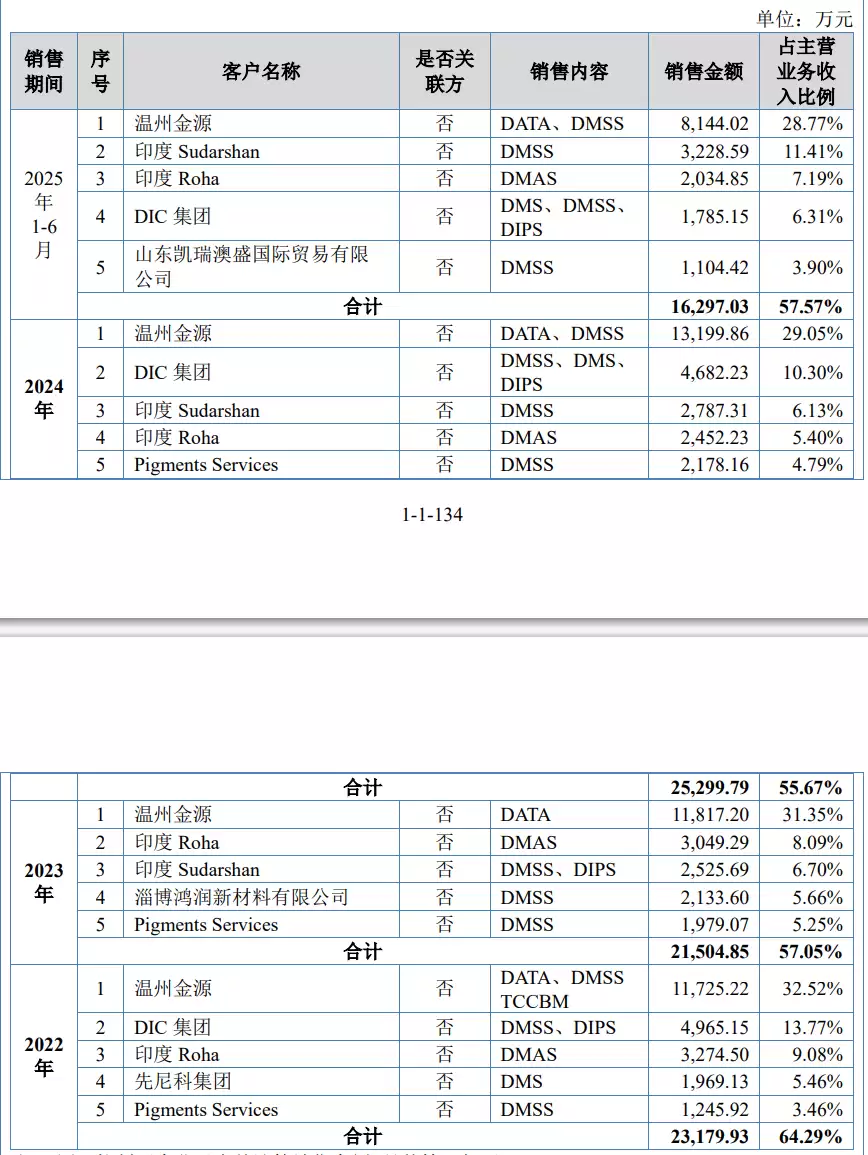 报告期内(2024年至2025年上半年),彩客科技实现的营业收入分别为3.61亿元、3.77亿元、4.54亿元和2.83亿元;同期净利润分别为8314.55万元、8485.54万元、1.16亿元和8643.46万元。